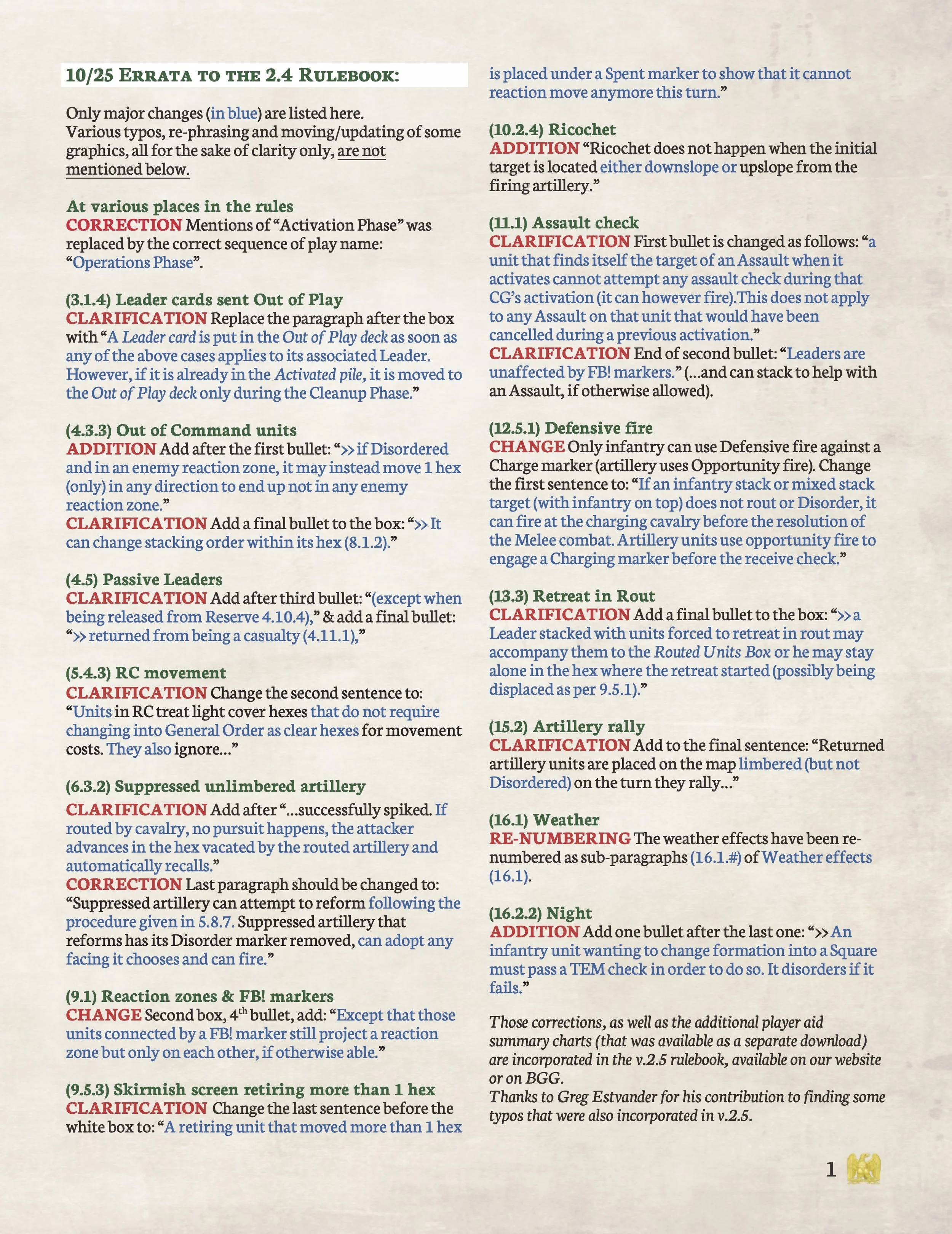 The latest version of the rules is v.2.5 version and is available now (link above). This will be the last update and will be the booklet included in the next printed game (1809: Talavera).